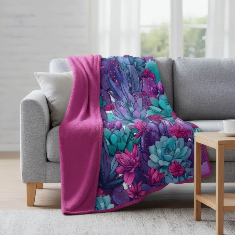 Diseñadas para quienes buscan suavidad, abrigo y un diseño único, estas mantas están confeccionadas a mano con Squish estampado con diseños exclusivos y una base de polar orgánico 100% algodón en diferentes opciones de color como gris oscuro, fucsia o arena, según disponibilidad.