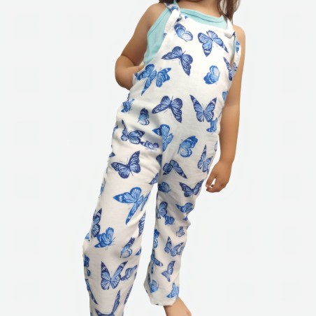 Su diseño evolutivo en tallas 1/3, 4/6 y 7/9 años permite que dure más de una temporada sin perder libertad ni estilo. Los detalles marcan la diferencia: tirantes regulables con lazada para ajustar la altura, goma trasera con ojales en la cintura para adaptarse al cuerpo sin apretar, y un corte holgado que favorece el juego y la exploración sin límites.
