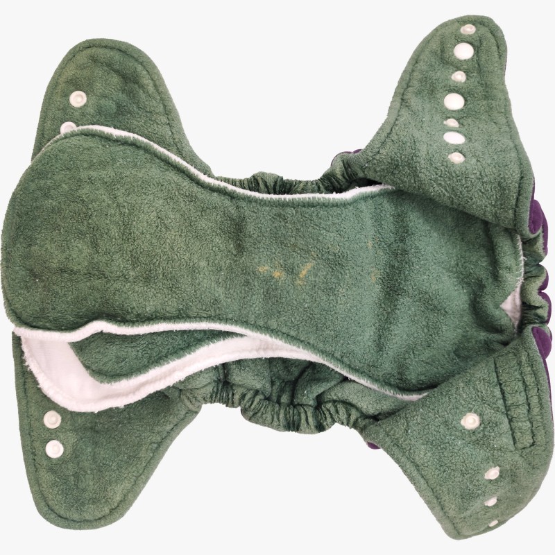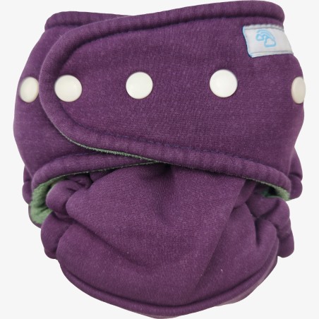 Pañal ajustado o híbrido americano de la artesana Cloud Nine. Doble capa de windpro al exterior, absorbentes de bambú y algodón con velour de algodón verde en contacto.
