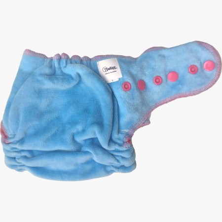 El exterior del pañal es de velour de algodón, el interior es de fleece de cáñamo al 55% y algodón orgánico al 45%, con alas incorporadas que le aportan mucha absorción, necesita cobertor. Al doblarlo queda en contacto el velour de algodón que aporta efecto semi seco, para garantizar la máxima suavidad y confort a la delicada piel de tu bebé. Ajuste americano y gomas para máxima comodidad y fácil de colocar.