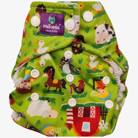 Pañal todo en uno interior bambú de marca kokosi. Estampado furgonetas fondo morado. Talla M (mini unitalla o MiniOs) de 4 a 10kg corte pants. Uso medio.