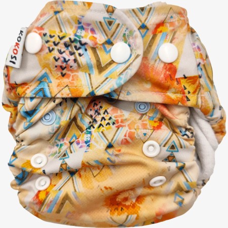 Pañal todo en uno interior bambú de marca kokosi. Estampado naranja corte clásico. Talla Os unitalla hasta 15kg. Uso medio.